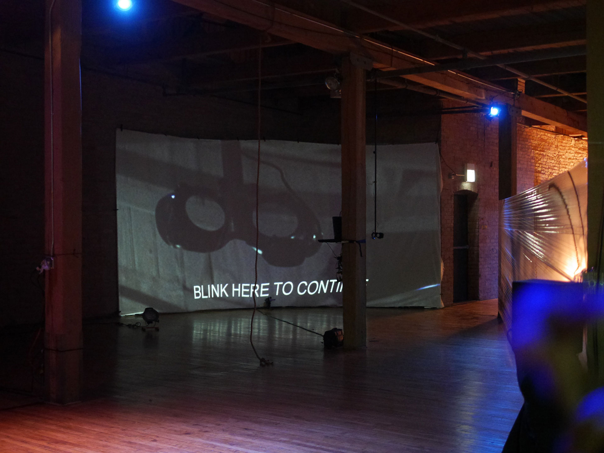 Fundamentally the piece is a very individual, personal experience that presents the participant with a immediate experience, providing control of the presented experience, with the challenge of the involuntary act of blinking and perhaps suggesting the process of creation of one’s own narrative, of navigating the construct of time/space, that precludes us.