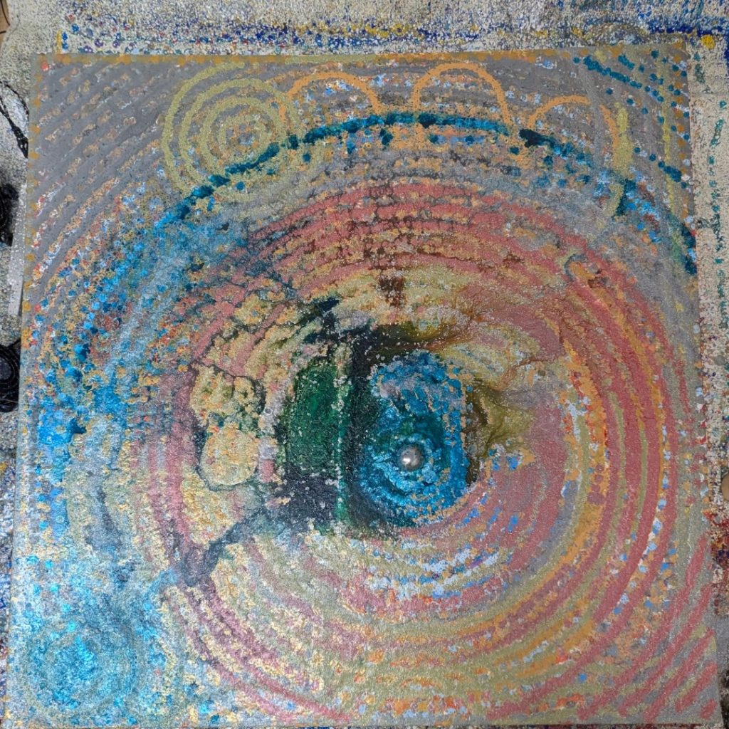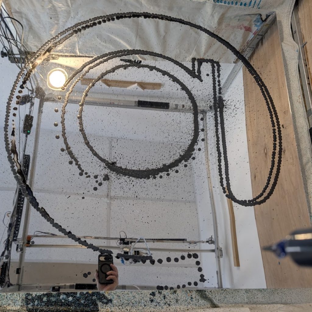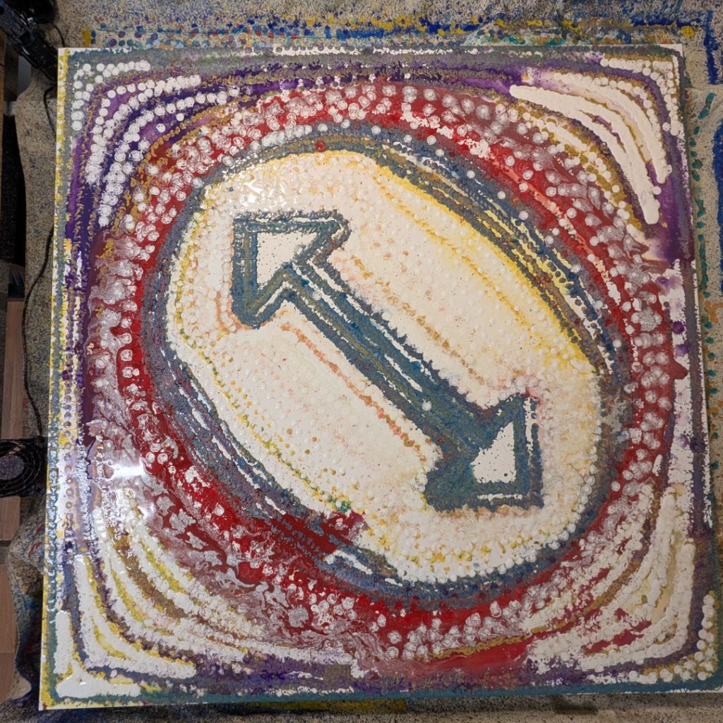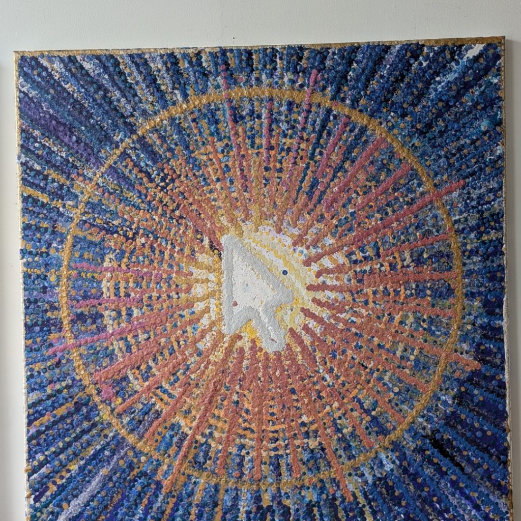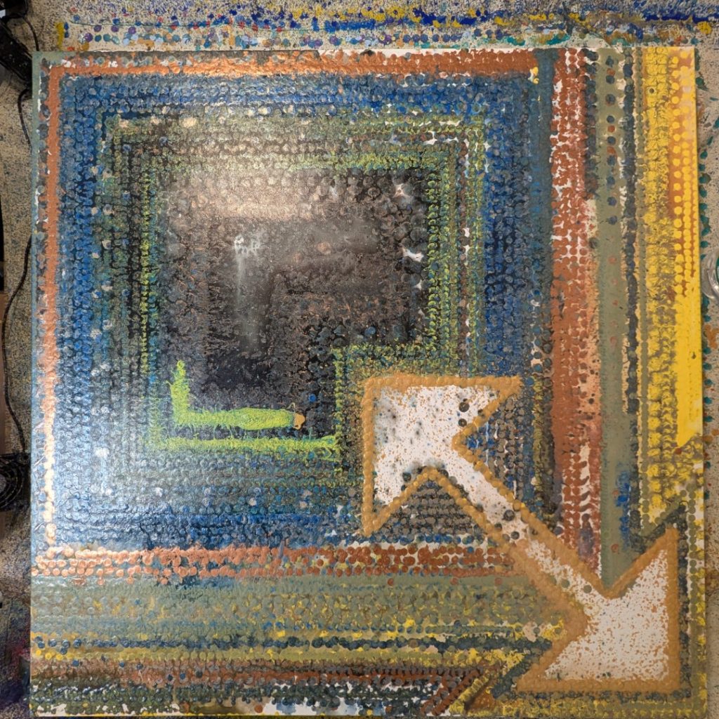 This technique creates a paradox: a machine’s perfect geometry rendered in the unpredictable language of gravity. By mediating the act of painting through a robotic arm, I remove the artist’s hand from the gesture, surrendering the final outcome to the code and the physical laws of viscosity. The result is a beaded, three-dimensional surface that is both uniform in its overall shape and unique in its texture. Ultimately, the paintings visually represent the fundamental tension between the calculated world of technology and the vibrant, unpredictable nature of our physical existence.