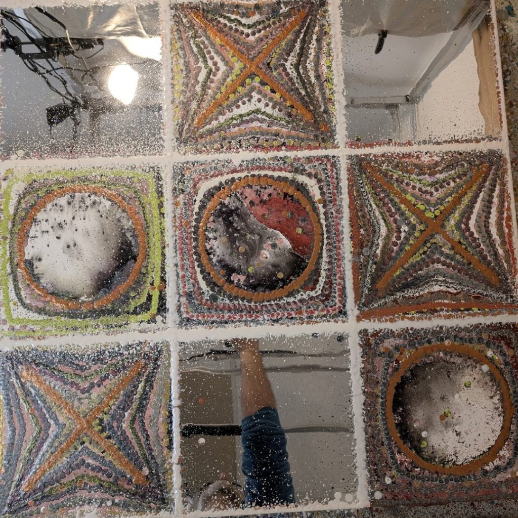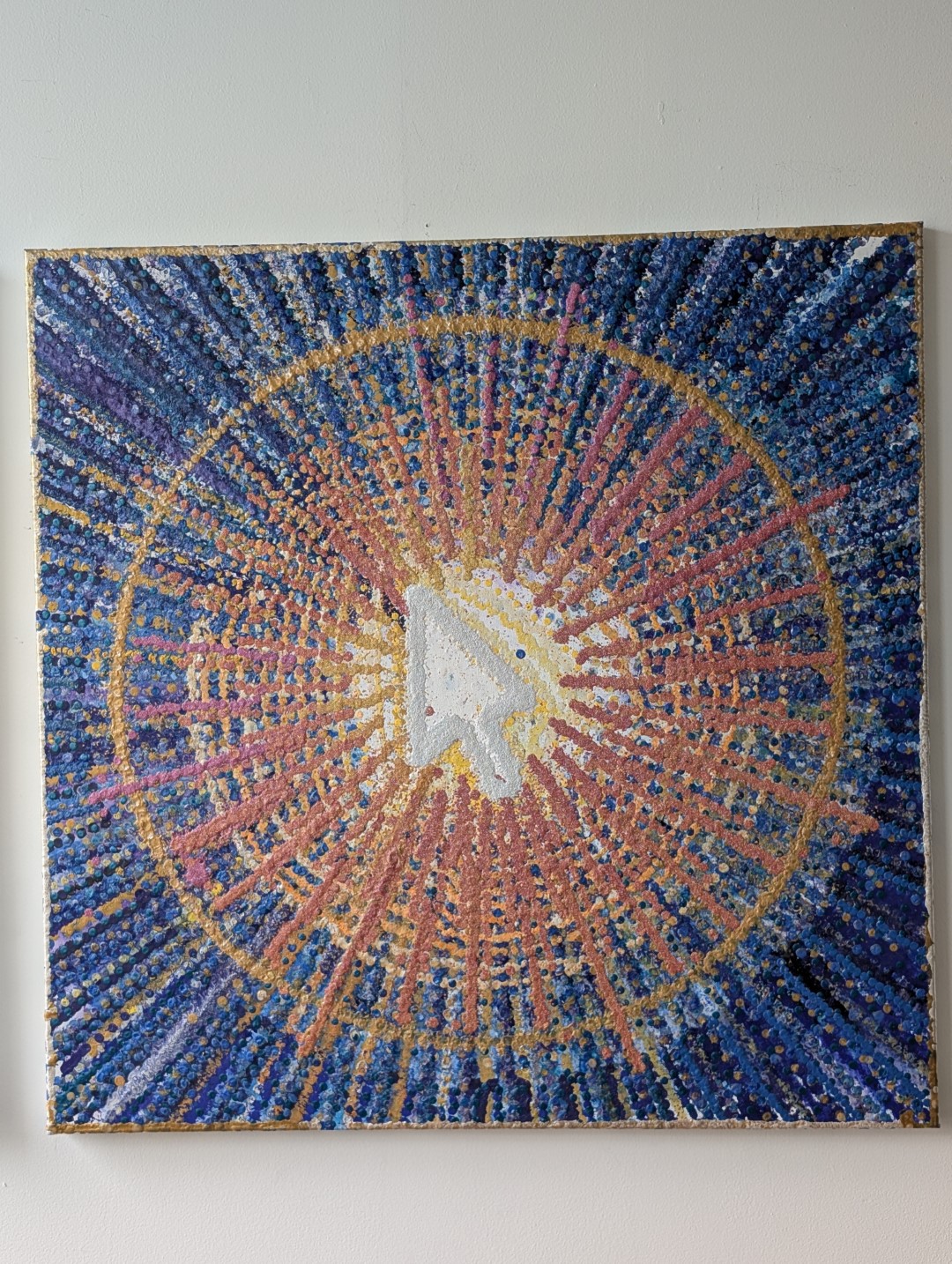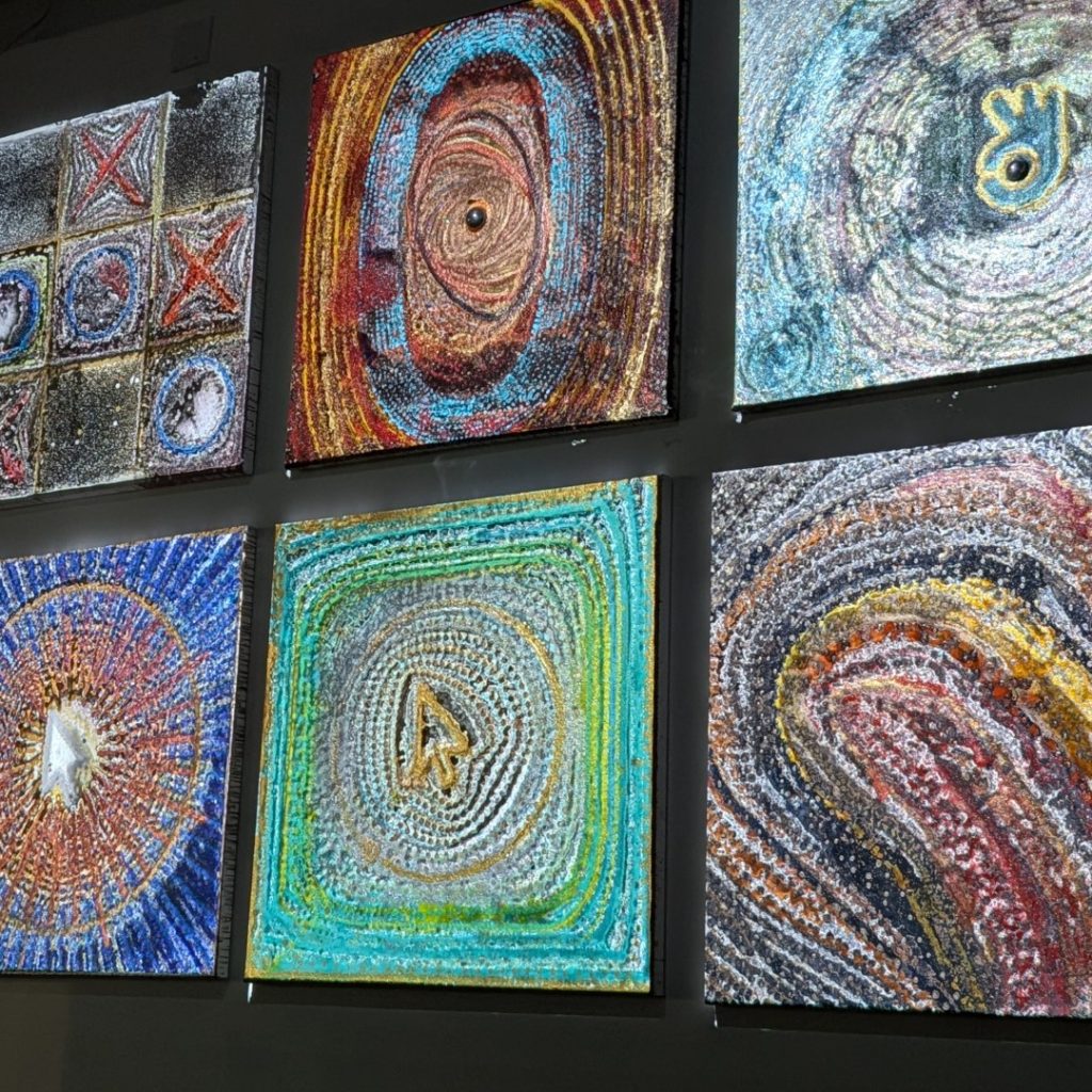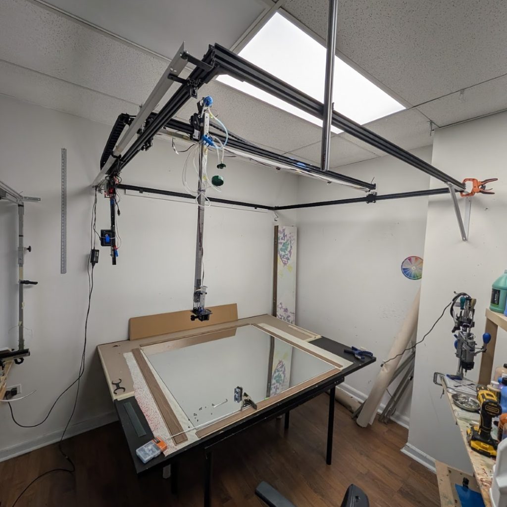 This technique creates a paradox: a machine’s perfect geometry rendered in the unpredictable language of gravity. By mediating the act of painting through a robotic arm, I remove the artist’s hand from the gesture, surrendering the final outcome to the code and the physical laws of viscosity. The result is a beaded, three-dimensional surface that is both uniform in its overall shape and unique in its texture. Ultimately, the paintings visually represent the fundamental tension between the calculated world of technology and the vibrant, unpredictable nature of our physical existence.